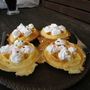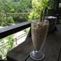 兩杯青草茶、一杯咖啡冰沙、一份奶油鬆餅