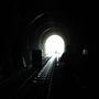 沿著火車鐵軌,穿過一個伸手不見五指的二號隧道